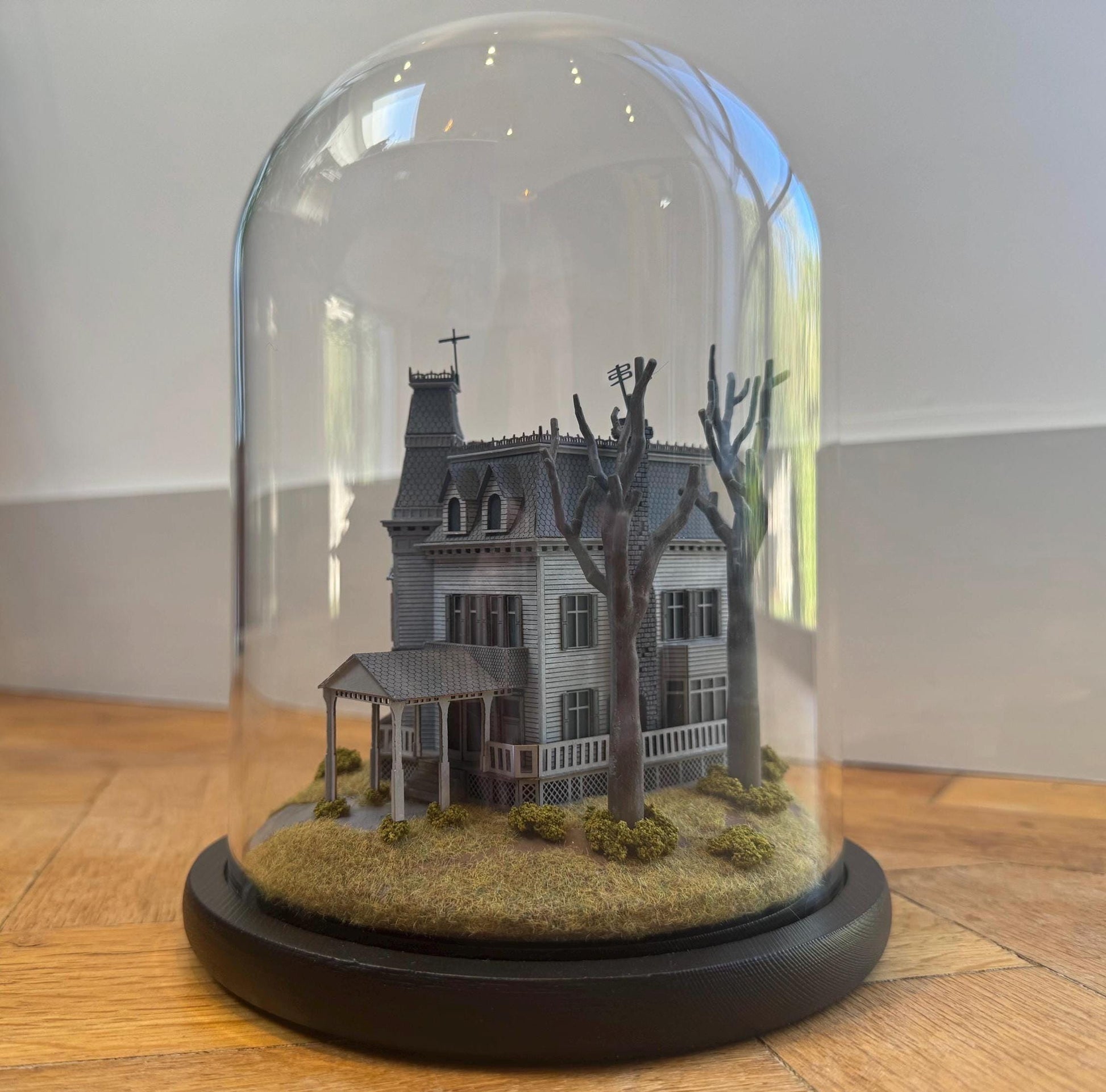 Handmade miniature model based on the Addams Family mansion from the 1964 TV show.