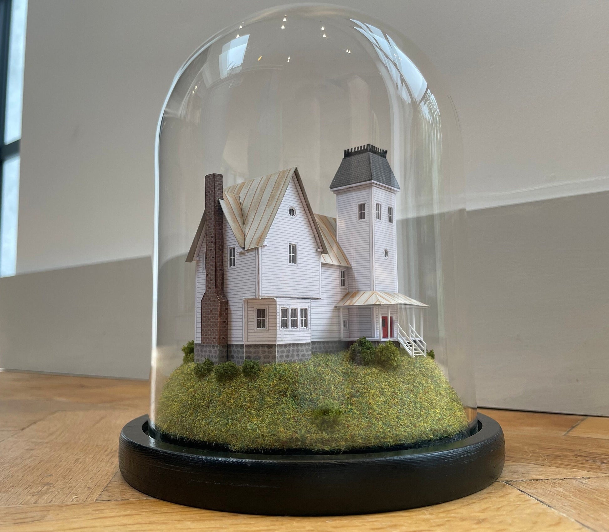 Handmade miniature model inspired by the Beetlejuice movie house.